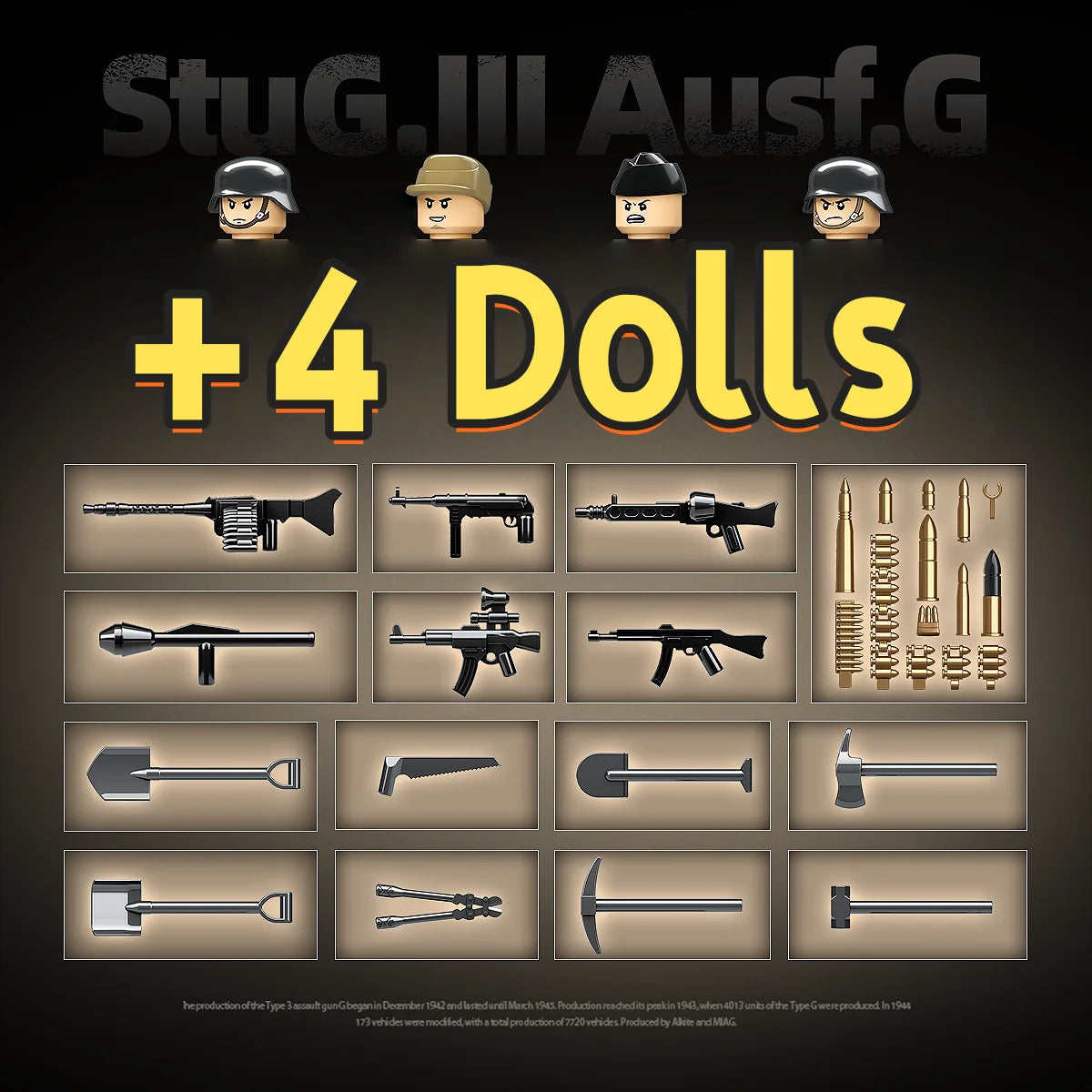 940pcs WW2 German StuG III Assault Tank Building Blocks Military Brick Model Gift