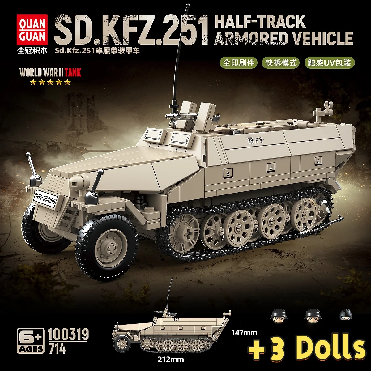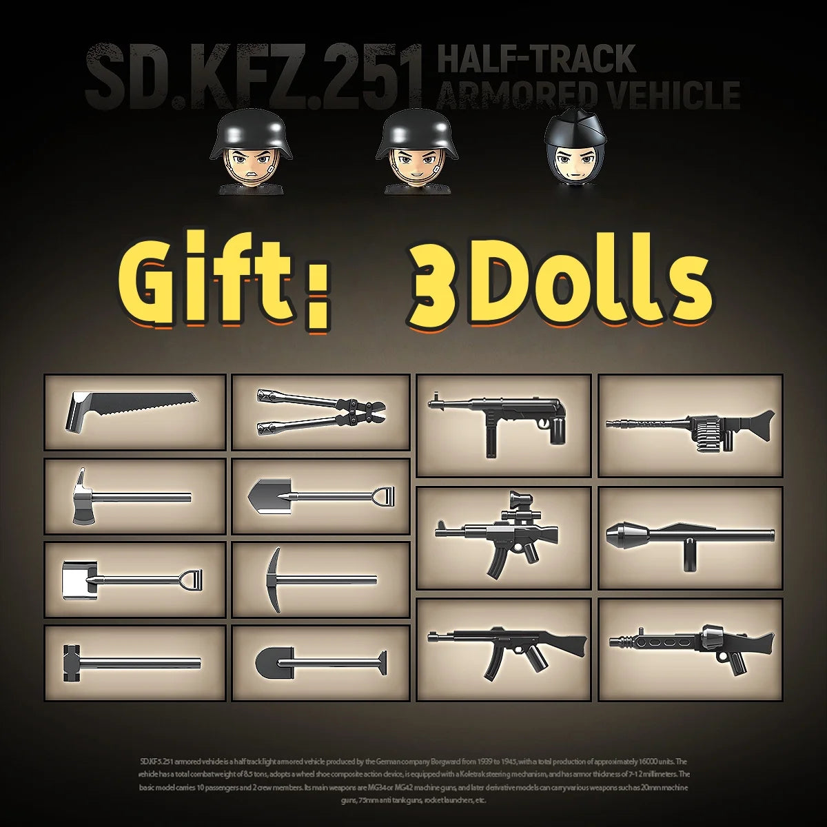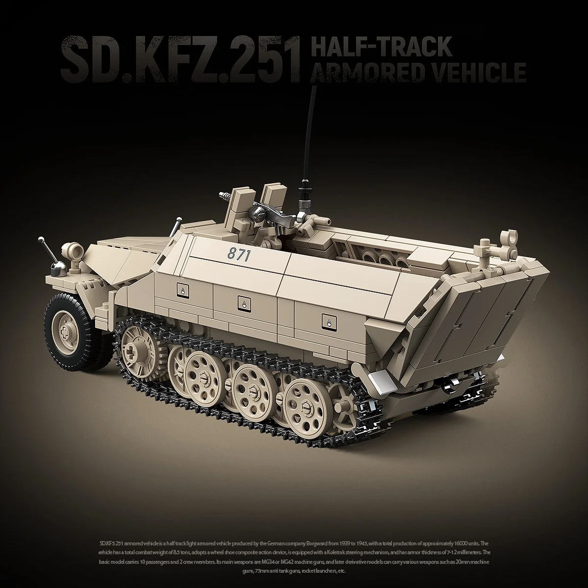 WW2 German Sd.Kfz.251 Half-Track Armored Vehicle Building Blocks Ruins Brick Model Gift